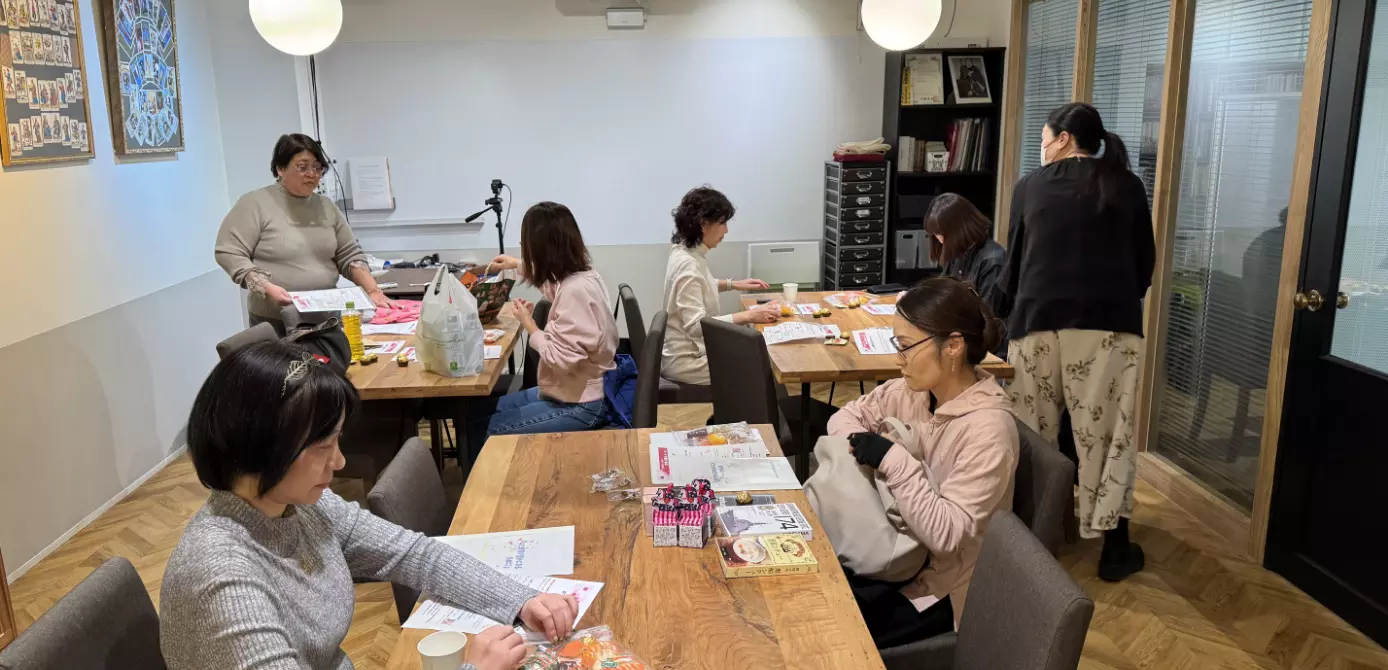 東京教室にて:生徒さん同士、アットホームな雰囲気で学んでいます。